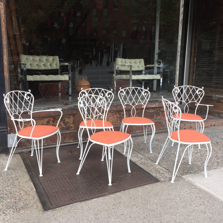 Mid Century Wrought Iron Patio Garden Dining Chair Set For Sale At