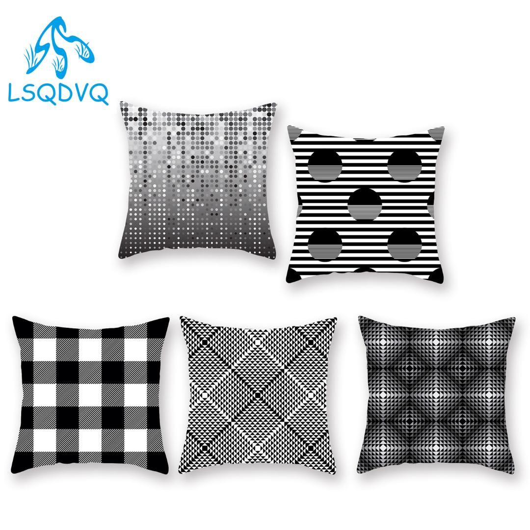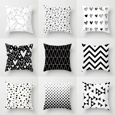 Simple Nordic Style Cushion Cover Black White Geometric Stripes
