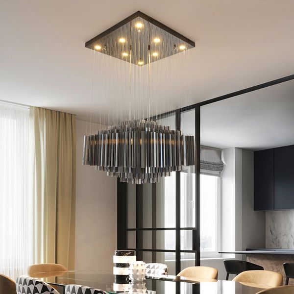New Design Modern Square Crystal Chandelier Lighting Luxury Smoky