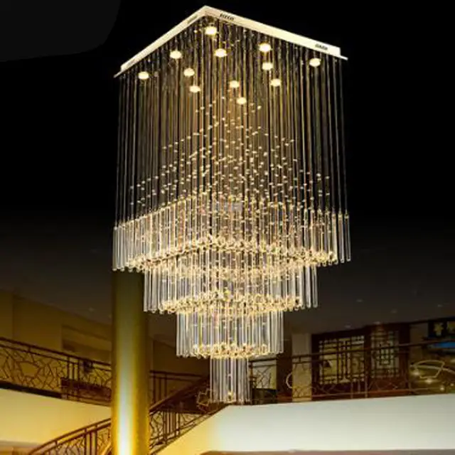 Square Crystal Chandelier Ideas Hall Villa Duplex Stair Lamp Long
