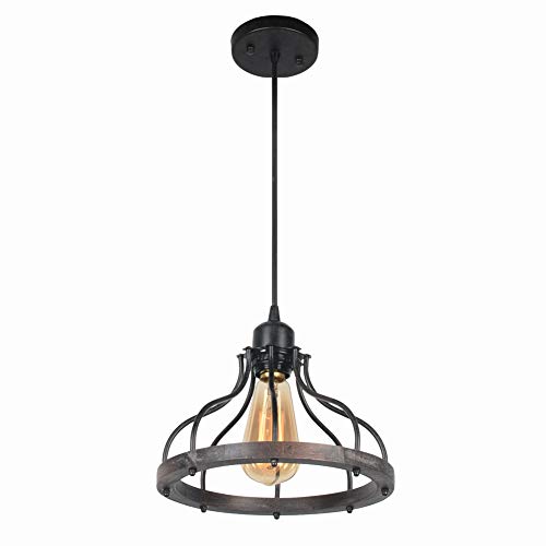 Beuhouz Round Small Rustic Pendant Light 1 Light Metal And Wood