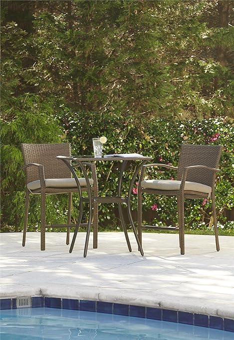 Phi villa patio 3 pc swivel bar sets textilene high bistro sets 2 bar stools and 1 table brown. Our attractive bar height sets will help you get the most out of your sunny patio space. A patio bistro set can sit underneath a tree by the garden in the most shaded area of your yard or simply in an area that could use a little fun and decor.