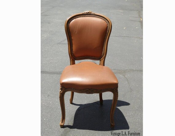 Vintage French Provincial Style Carved Wood Brown Leather Etsy