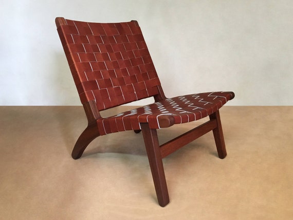 Brown Leather Mid Century Modern Lounge Chair Accent Chair Etsy