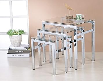 Glass Nest Of Tables 3 Coffee Side Coffee Lamp Table Set Living