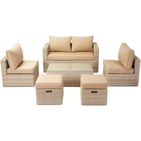 Clearance Outdoor Patio Furniture Sets 6pcs Wicker Patio