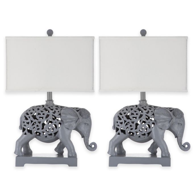 Safavieh Hathi Elephant Table Lamps In Grey With Rectangular