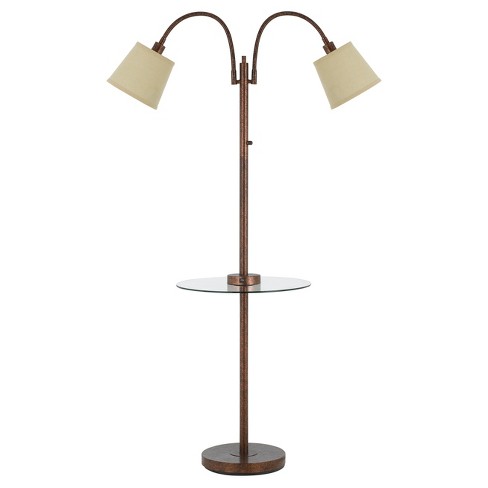 40w 3 Way Gail Metal Double Gooseneck Floor Lamp With Glass Tray