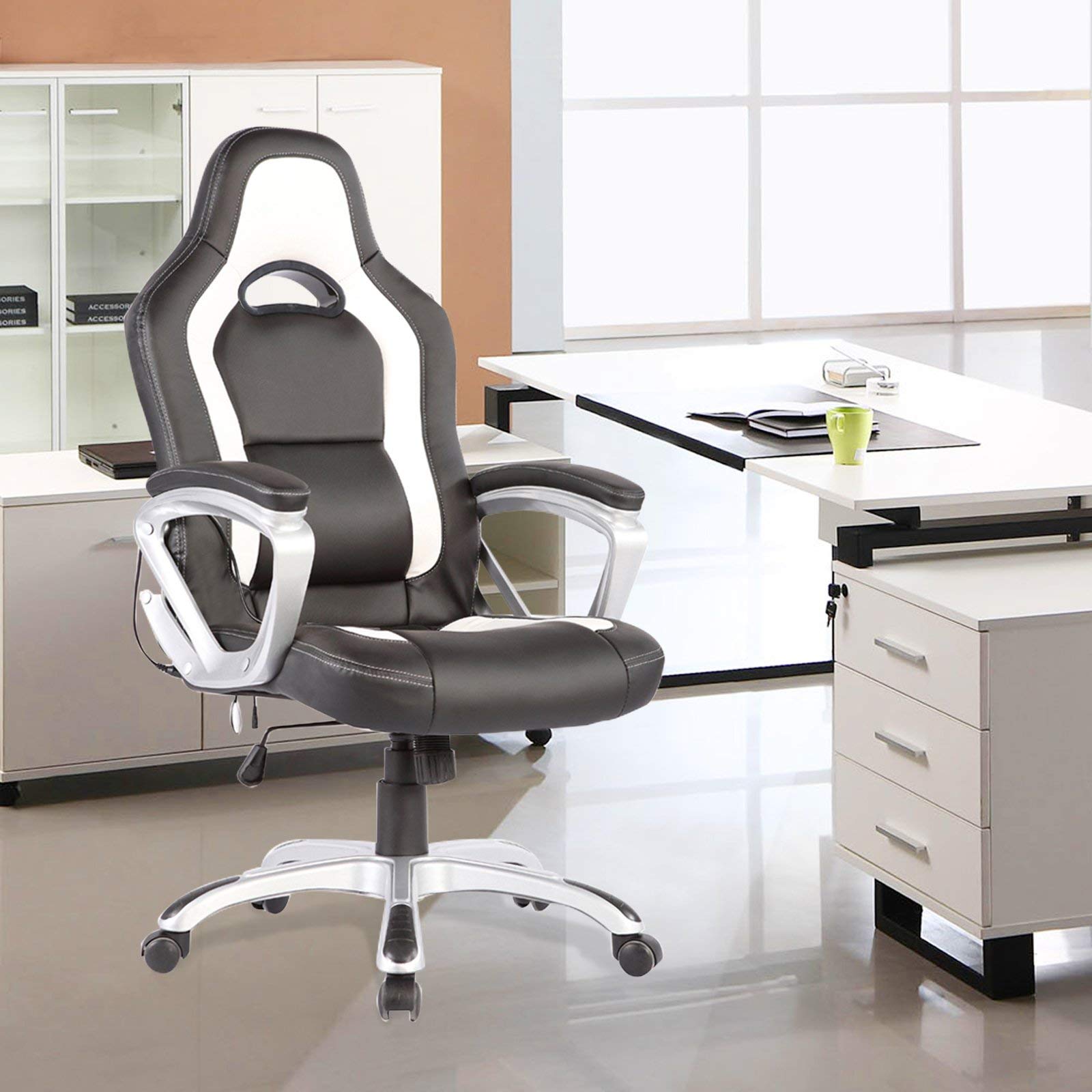Anself Race Car Style Pu Leather Heated Massaging Office Chair