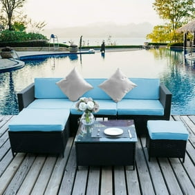 Costway 6 Pc Patio Rattan Furniture Set Sectional Cushioned Seat