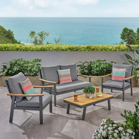 Christopher Knight Home Sinclair Outdoor 4 Piece Aluminum And Faux