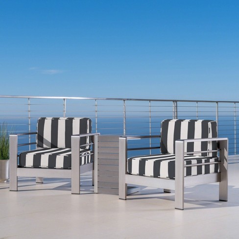 3pc Cape Coral Aluminum Faux Wood Patio Chat Set With Sunbrella