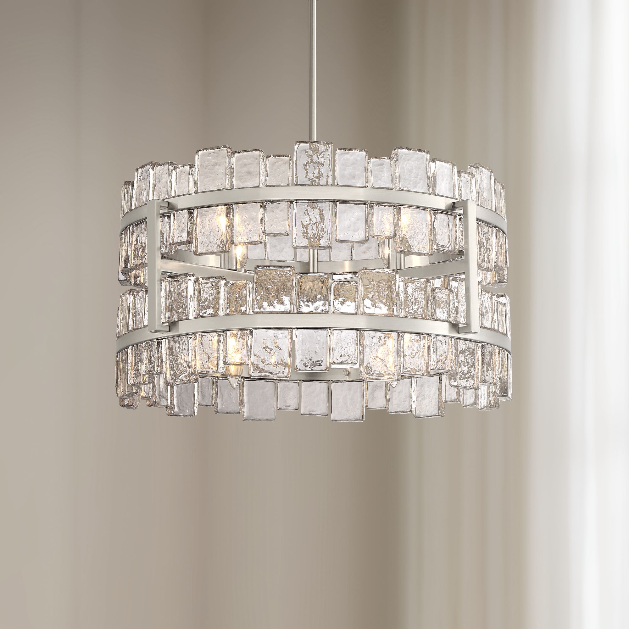 Primal Ice Texture 38 Crystal Glass Drum Chandelier By Kaiser