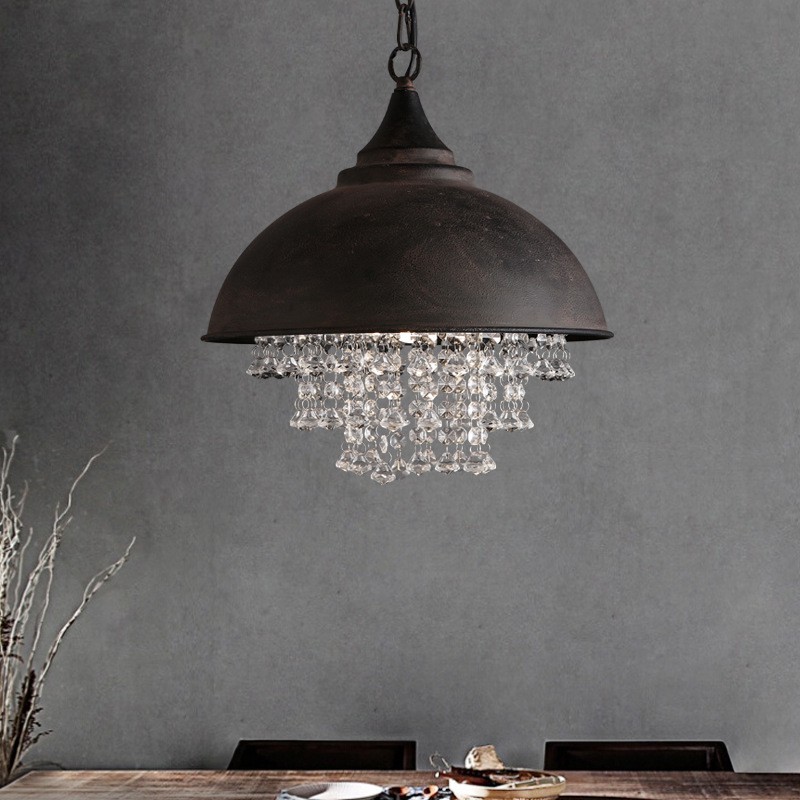 Retro Industrial Iron Pendant Lamp Modern Luxury Crystal