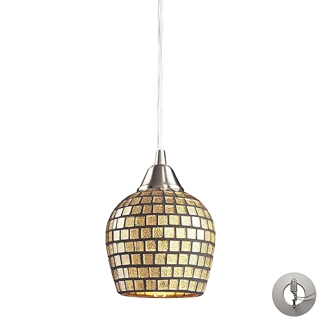 1 Light Pendant In Satin Nickel And Gold Mosaic Glass Includes An