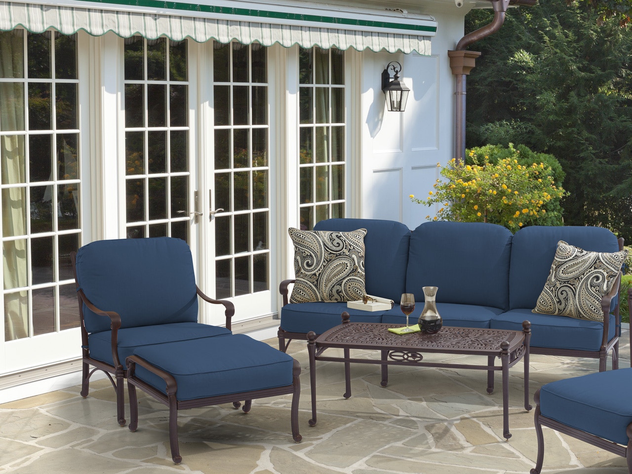 Outdoor Patio Verona Desert Bronze Cast Aluminum And Navy Cushion