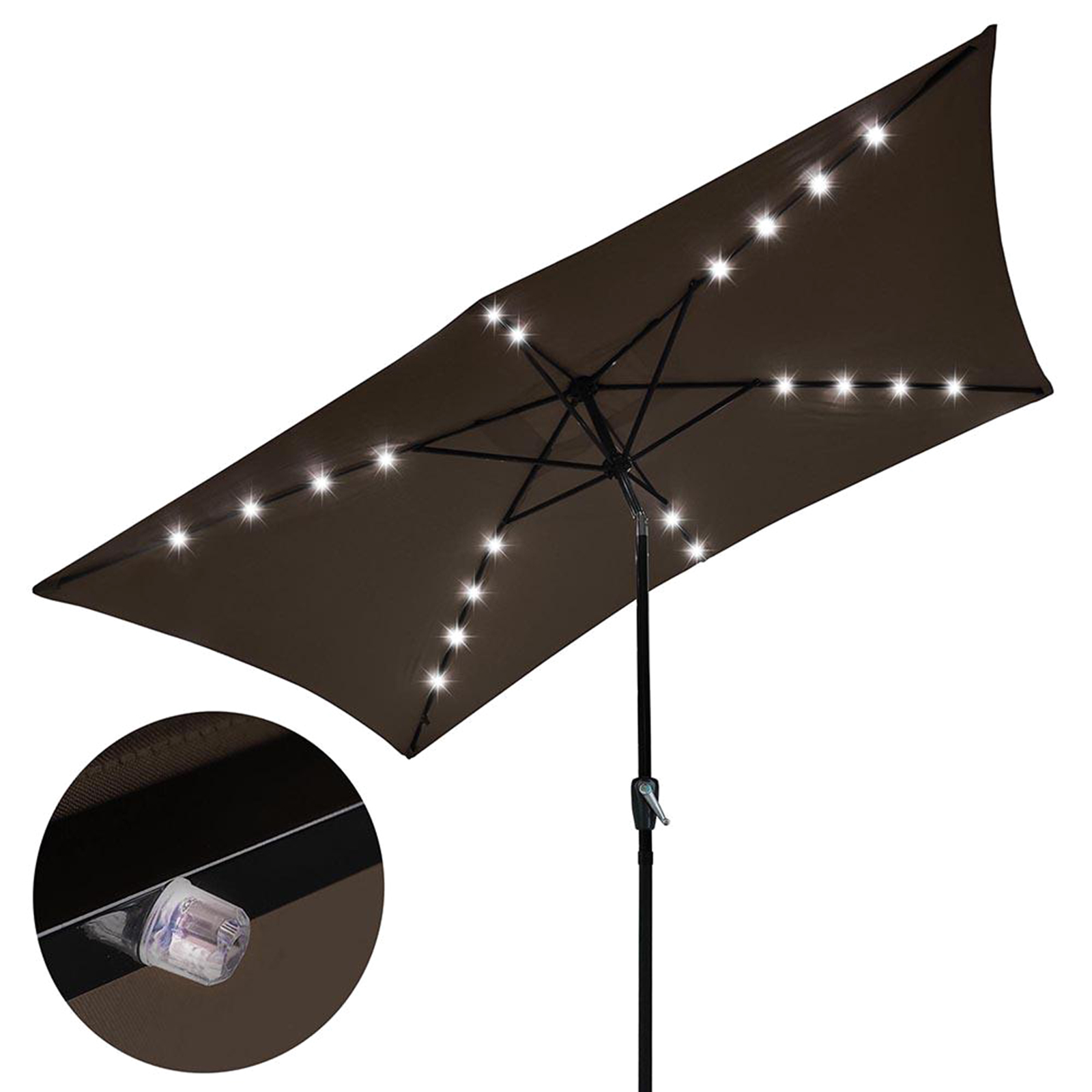 Rectangular patio umbrella with solar lights. Abccanopy rectangular solar powered patio umbrella outdoor umbrellas tilt and crank for patio deck and pool market table umbrella with 26 led lights 66 by 98 ft 41 out of 5 stars 43 8595 85. Sunray market patio. The lighting system features 20 pre installed led bulbs.