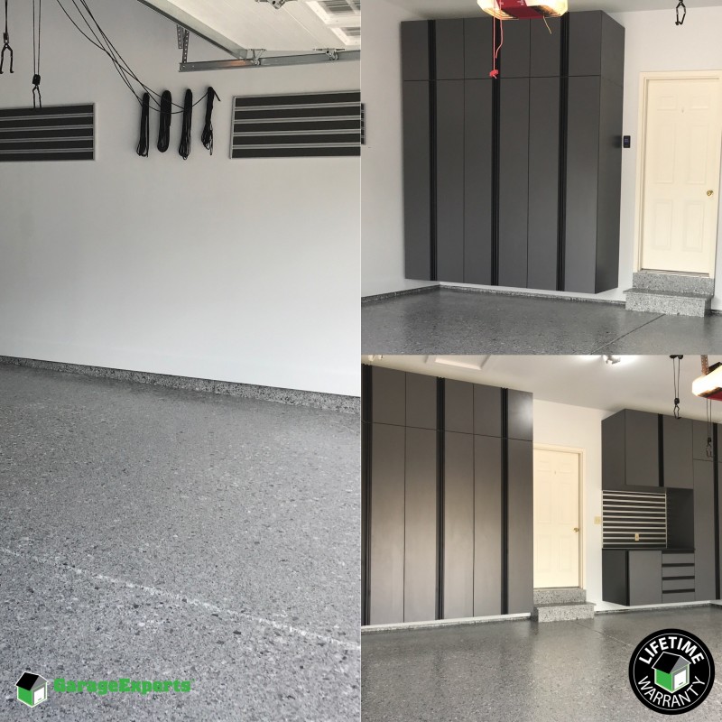 Residential Garage Epoxy Flooring And Cabinet Storage Solution In