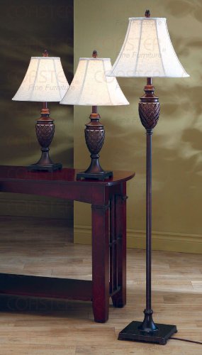 3pc Traditional Style Lamp Set With Beige Shade One Floor Lamp And
