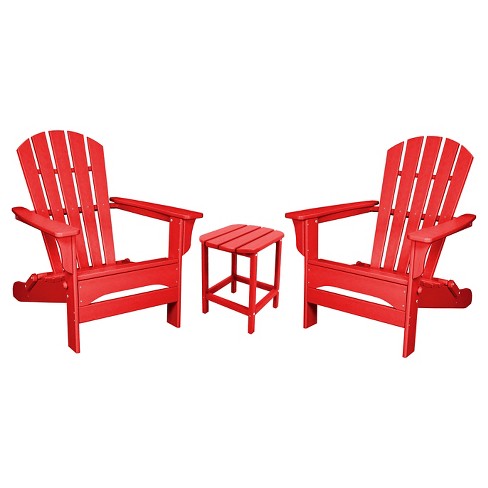 Polywood St Croix Folding Adirondack 3 Piece Set Sunset Red