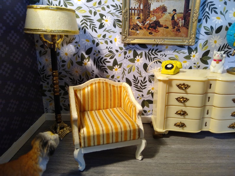 Vintage Lundby Yellow Striped Accent Chair 1 To 16 Scale Etsy