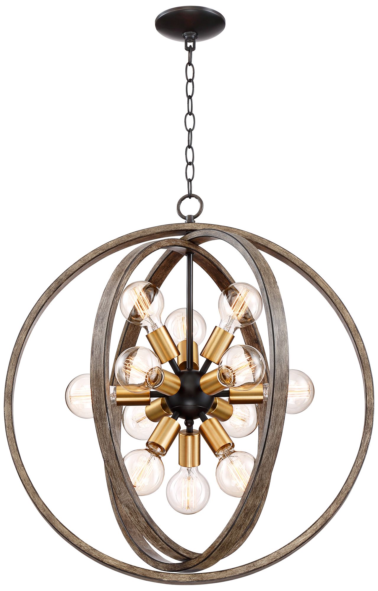 Stedman 25 Wide 12 Light Brass And Wood Orb Chandelier 15c89