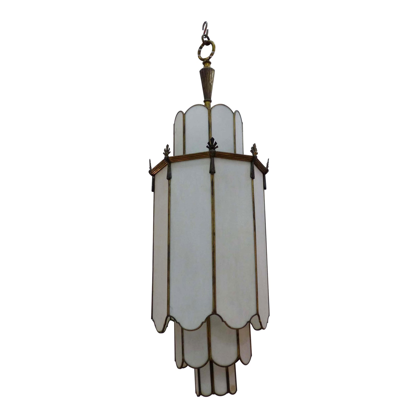 Art Deco Chrome And Milk Glass Chandelier Lot 758 1815305231